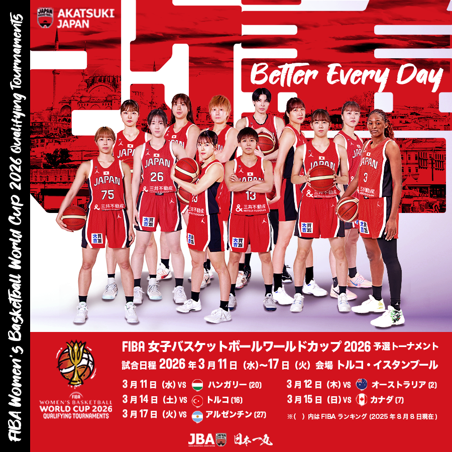 今回のリブランディングではリセットするのではなく、FIBA女子ワールドカップ2022、FIBAワールドカップ2023、パリ2024オリンピックに向けて、5人制、3人制、男子、女子と様々なカテゴリーの日本代表を「AKATSUKI JAPAN」に統一することでブランディングを強化いたします。